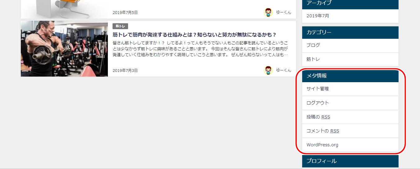 そしてこの項目で何ができるのかというとサイトの運営者(個人のブログならそのブログを書いている本人)がサイトにログイン・ログアウトしたり、簡単に言うとサイトの運営に関することが設定できる項目ということになります。