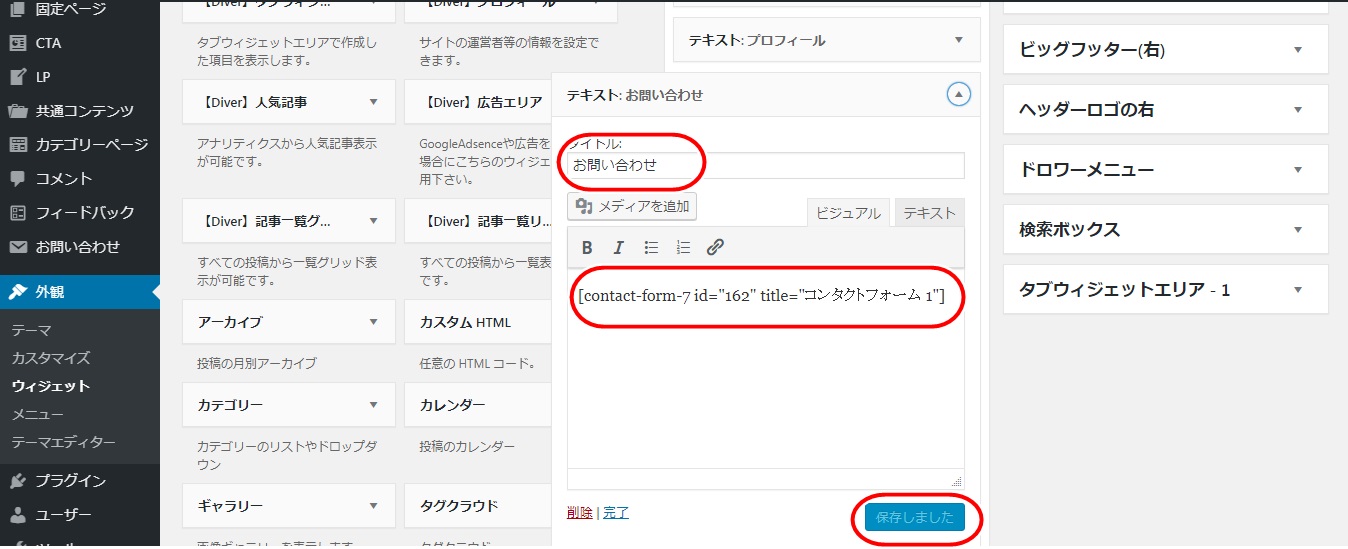 お問い合わせフォームをサイドバーに表示する方法