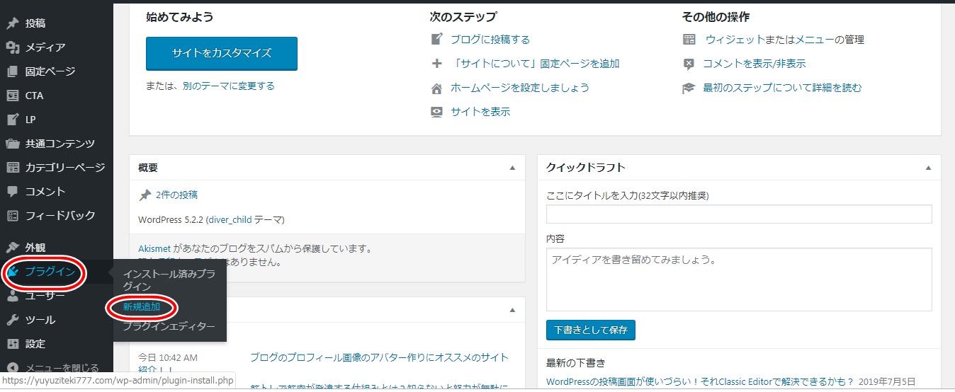 ダッシュボードからプラグインの新規追加をクリックします。